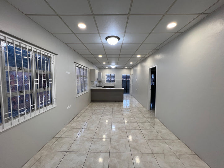 This spacious two bedroom home sits just off Boundary Road in El Socorro, San Juan. It's walking distance from the Aranguez Main Road ( a healthy walk ) . And a few roads south of the Bus Route.
