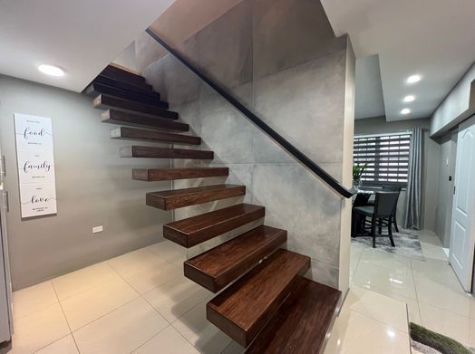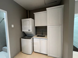 The upper level of the home houses the three bedrooms and laundry area. Two of the bedrooms share a bathroom, these bedrooms come equipped with floor to ceiling cupboards, one with a queen bed and the other sports a work desk.